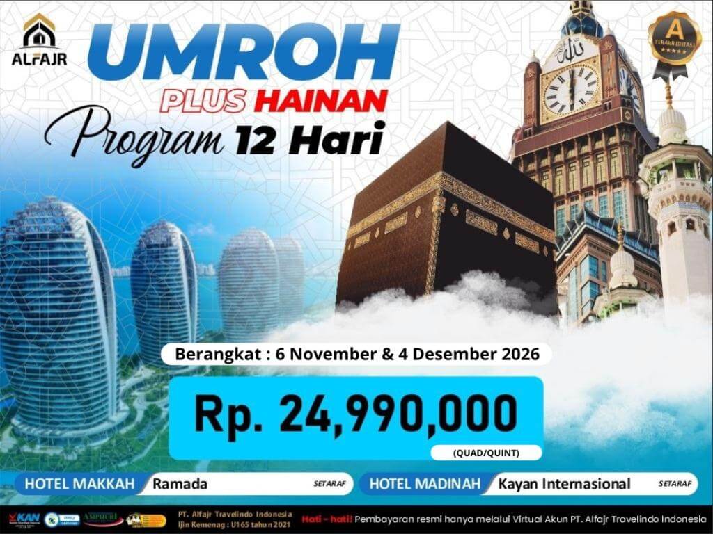 Paket Umroh 4 Desember 2026 Umroh + Hainan 12H
